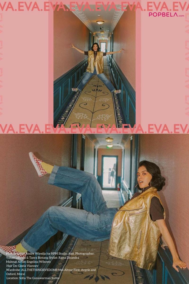 Tampil apa adanya sambil membawa helm berwarna hitam ketika datang ke Sofia at The Gunawarman sebagai tempat lokasi pemotretan dengan Popbela, memberi kesan kalau Eva sosok yang energik dan tipe perempuan yang nggak ribet. Tak hanya kedua orangtuanya saja yang muncul dalam benak ketika melihatnya, tetapi Eva yang mempunyai karakter kuat ini justru mengubah perspektif kita mengenai dirinya. Ya, tak hanya dikenal sebagai anak dari selebritas kenamaan, tetapi sosok Eva kini sudah dikenal sebagai seorang musisi.