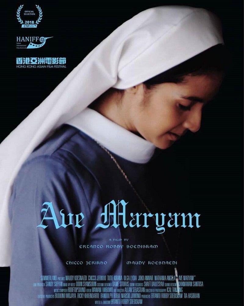 Kali pertama mendengar film berjudul Ave Maryam karya sineas Indonesia memang sedikit bikin penasaran. Tapi ketika film ini dibintangi oleh Maudy Koesnadi, seketika rasa penasaran saya makin menjadi, terlebih lagi melihat penampilan Maudy lengkap dibaluti baju biarawati. Saya bertanya-tanya, bagaimana seorang Maudy yang berperan sebagai biarawati muda bernama Maryam (40) bisa lepas dari karakter Zaenab yang sudah melekat dalam dirinya sedari zaman Doel Anak Sekolahan?
