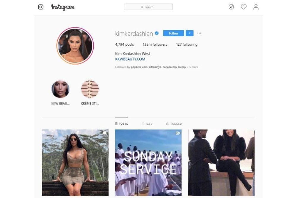 Berbicara soal Instagram rasanya nggak afdol kalau nggak menyebut salah satu klan dari Kardashian-Jenner. Kim Kardashian West menjadi anggota klan Kardashian-Jenner dengan jumlah followers terbanyak, yakni 135,2 juta followers.