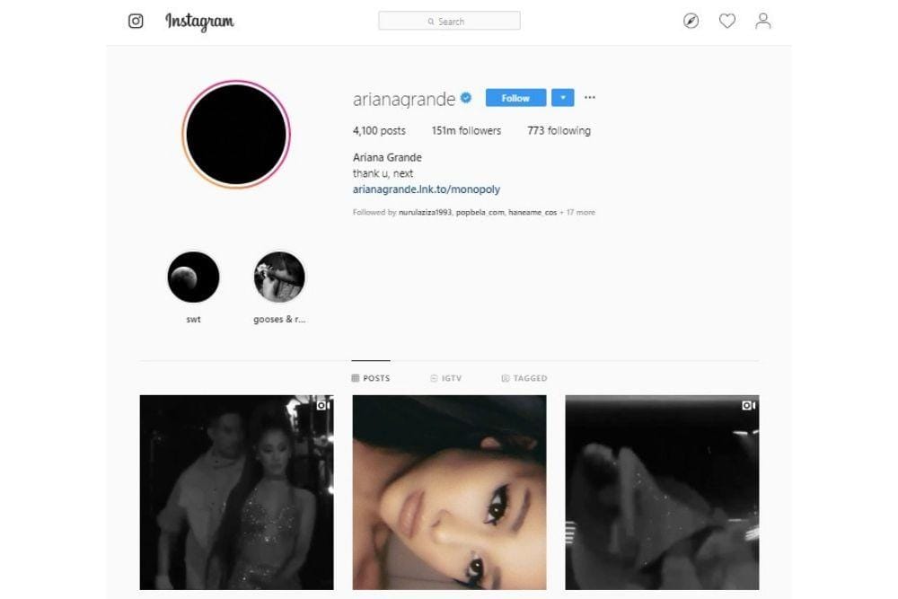 Posisi kedua dengan akun followers Instagram terbanyak di dunia adalah Ariana Grande. Saat ini ia memiliki jumlah followers sebanyak 151,9 juta. Produktifnya dalam mengeluarkan banyak lagu baru yang Easy Listening adalah salah satu alasan pertumbuhan jumlah followers-nya menjadi begitu pesat.
