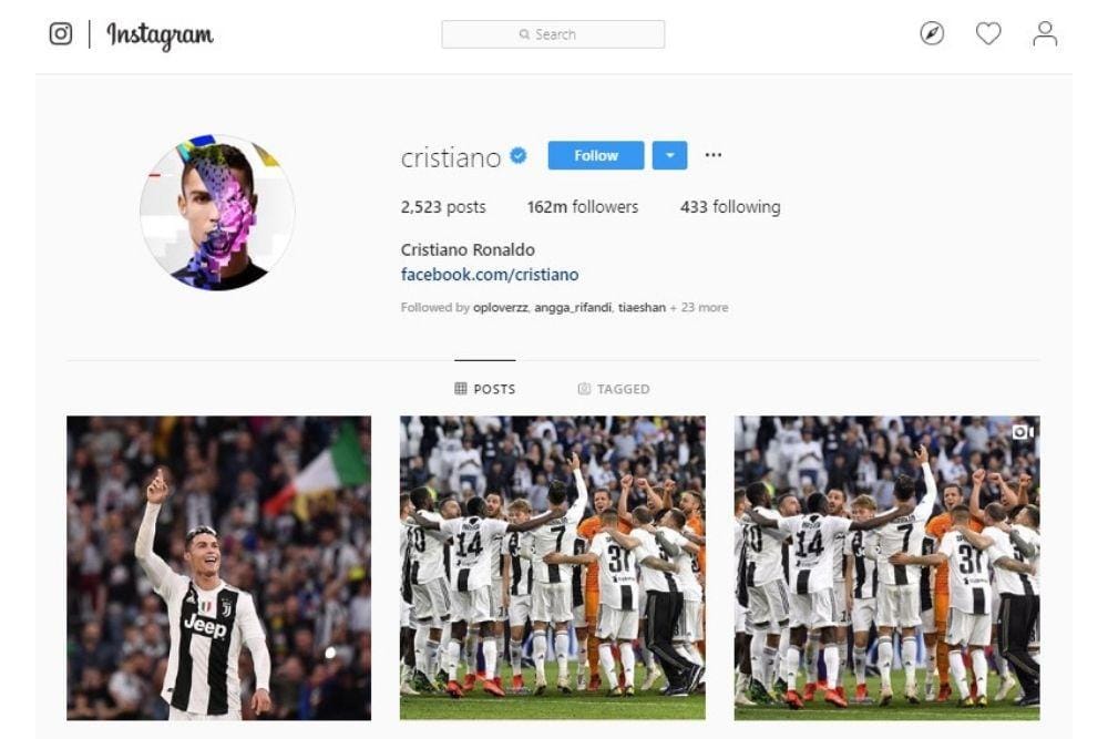 Dari jutaan akun yang ada di dunia, Cristiano Ronaldo menjadi akun followers Instagram terbanyak di dunia. Jumlah followers-nya hingga saat ini (22/4) mencapai 162,7 juta. Jumlah ini bahkan sampai menggeser sang ratu Instagram, Selena Gomez.