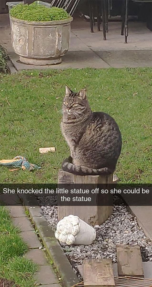 3. Merasa bosan, seekor kucing rela menggantikan patung dengan dirinya sendiri.