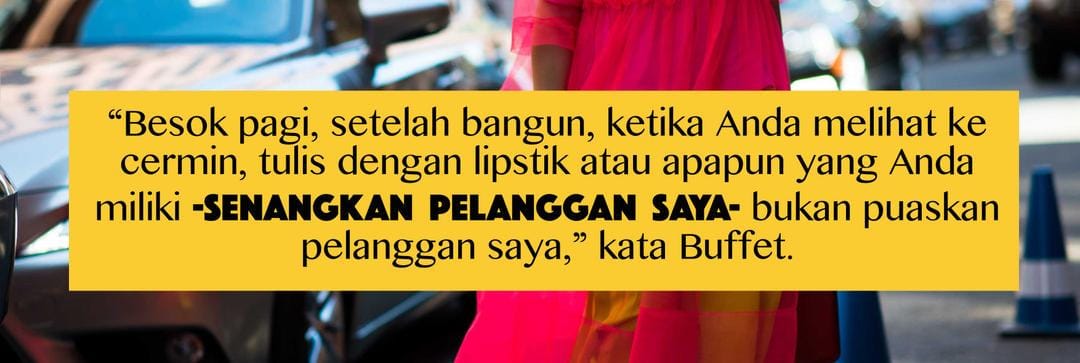 Bela tidak perlu harus memiliki bisnis dulu kok untuk menerapkan saran Buffet ini. Jika Bela saat ini bekerja kantoran, coba saja tempatkan rekan kerja atau atasan sebagai pelanggan yang dimaksudkan. Bukan berarti menjadi pelayan mereka, tapi Bela bisa bekerja dengan senang hati untuk membantu dan memberikan kinerja yang terbaik. Good luck!