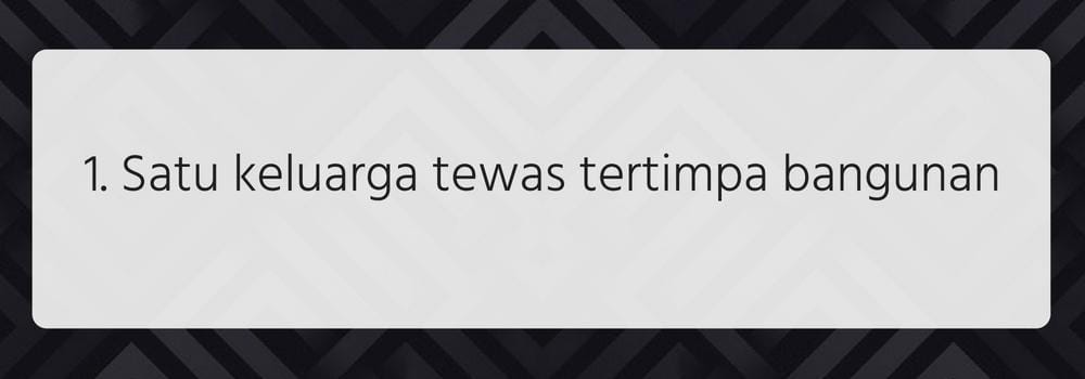 Korban gempa Lombok yang tewas rata-rata mereka tertimpa bangunan yang roboh. Salah satu korban tewas adalah keluarga Alimun. Keluarga Alimun yang terdiri dari istri dan anaknya yang berjumlah tiga orang tewas karena tertimpa reruntuhan bangunan rumahnya sendiri.