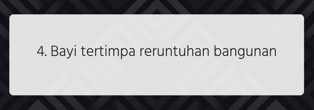 Bayi pun menjadi salah satu korban. Di Dusun Senggigi, Kabupaten Lombok Barat, Tim SAR menemukan jenazah bayi dengan kondisi memilukan akibat tidak sempat diselamatkan dan tertimpa reruntuhan bangunan.