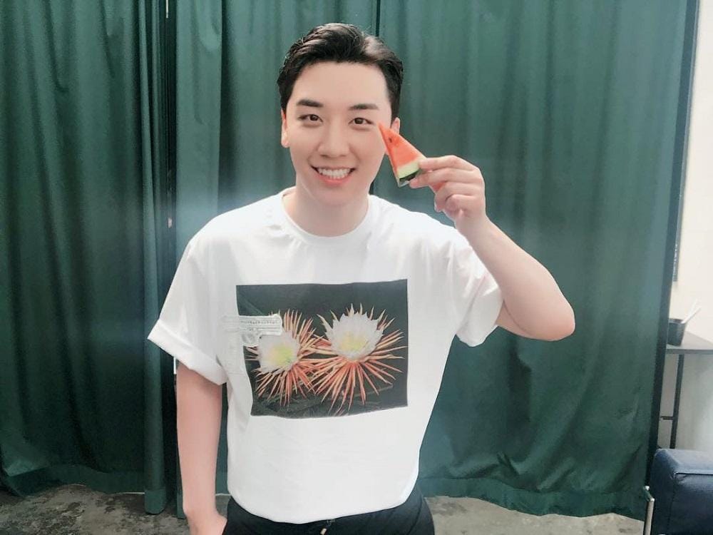 Padahal Seungri cuma foto sama semangka aja lho, senyumnya udah berseri-seri gitu.