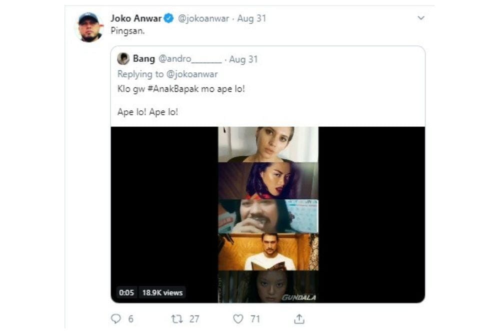 1. Tak cuma foto yang diunggah, ada warganet yang bahkan menempelkan video pada <i>template </i>foto #AnakBapak yang berhasil menarik perhatian Joko. Suaranya yang keras dan terkesan <i>ngegas</i> membuat Joko kaget dan seolah-olah pingsan