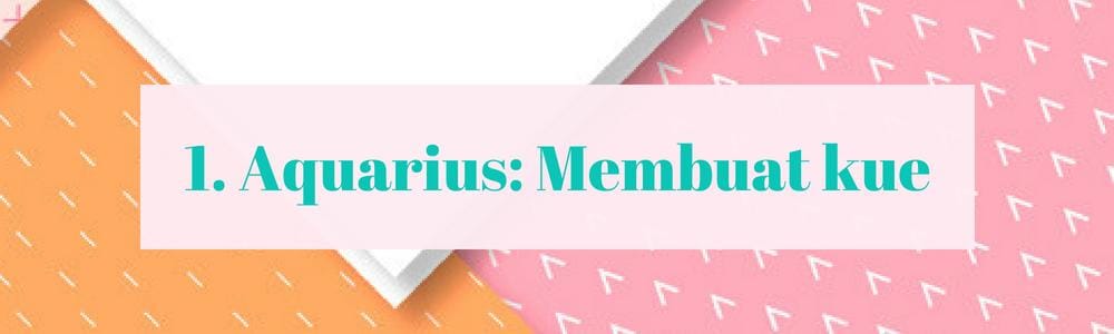 Untuk seorang Aquarius, nggak ada kegiatan solo yang lebih menarik selain memanggang kue. Dengan rasa ingin tahu, kreativitas, dan intuisi yang tepat, dapur menjadi tempat terbaik untukmu memasak dari berbagai resep. Karena terkenal dengan sifat yang mau berbagi, wajar saja jika kamu meluangkan waktu sendiri untuk memanggang kue agar bisa diberikan kepada teman-temanmu.