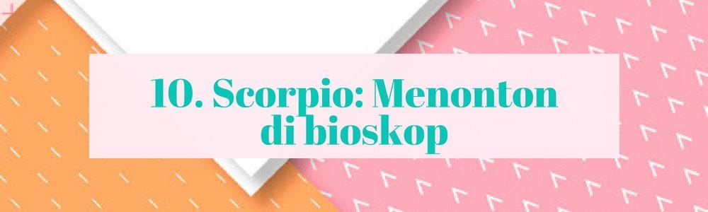 Menonton sendiri di bioskop, mengapa nggak? Ini adalah kegiatan seru yang direkomendasikan untuk Scorpio. Sebab, pribadi Scorpio senang memegang kendali, jadi sifat keinginan yang kuat itu membuatmu memilih film yang ingin kamu nikmati ketimbang mengikuti saran orang lain. Kamu pun senang memberikan aura misterius, dan mendatangi bioskop sendiri membuat orang-orang bertanya-tanya akan kepercayaan dirimu yang besar.