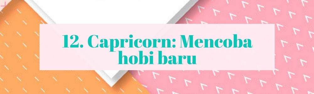 Pemilik zodiak Capricorn, kegiatan seru yang bisa kamu lakukan saat sendiri adalah mencoba hobi baru. Mulai dari berkebun hingga membuat scrap book, dari fotografi sampai membuat video, kecederunganmu untuk memasang standar yang tinggi pada diri sendiri memberikan keuntungan untukmu meraih kemampuan baru. Dengan dedikasi dan ketekunanmu, membuatmu menikmati hobi yang baru kamu coba itu.