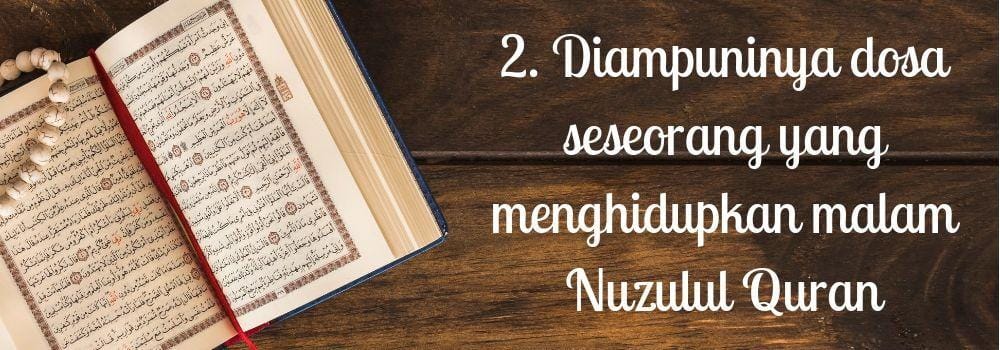 Bagaikan bayi yang baru lahir ke dunia, seseorang yang menghidupkan malam Nuzulul Quran akan diampuni dosanya yang telah lalu. Hal ini sesuai dengan Hadits Rasulullah SAW.