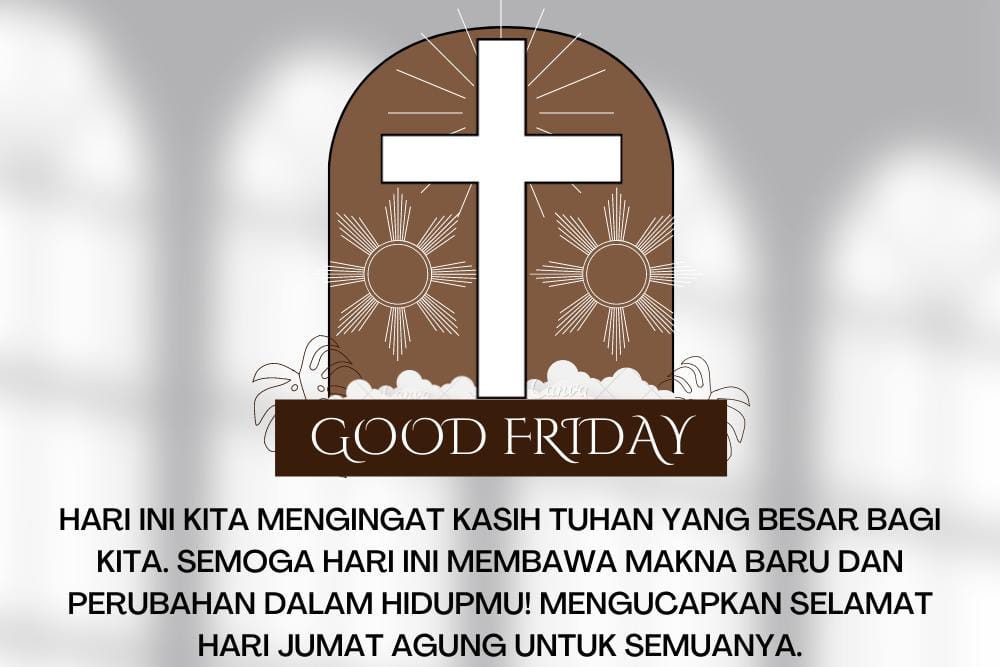 Hari ini kita mengingat kasih Tuhan yang besar bagi kita. Semoga hari ini membawa makna baru dan perubahan dalam hidupmu! Mengucapkan selamat hari Jumat Agung untuk semuanya.