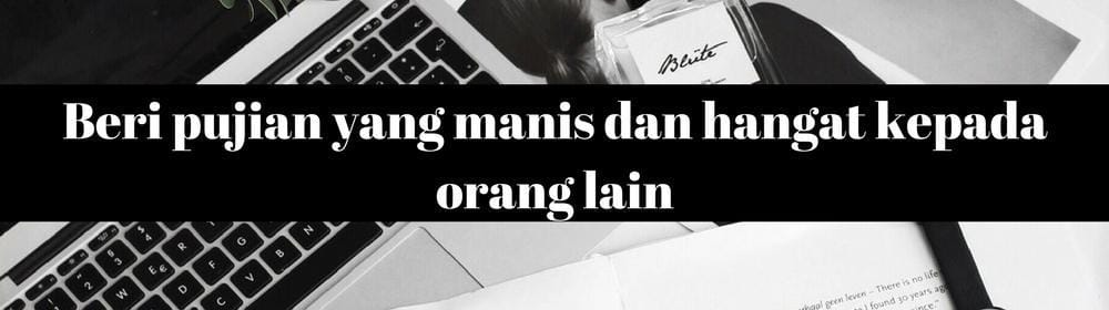 Semua orang senang dan suka akan segala hal baik yang ada di dalam diri mereka. Untuk itu, cobalah memberi seseorang pujian dengan tulus setiap hari untuk menyebarkan cinta dan kebahagiaan. Apalagi kalau kamu mau menraktir mereka, kebahagiaan itu akan berlipat. Menraktir pun tak harus makanan atau sesuatu yang mewah. Secangkir kopi pun bisa menyebarkan kasihmu kepada kawan dan sekitar.