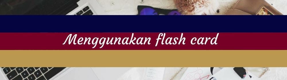 Flash card merupakan kumpulan kartu yang bisa kamu buat sendiri dari kertas. Tulislah hal-hal yang perlu kamu ingat di kertas tersebut, misal kata-kata baru ketika kamu belajar bahasa asing. Baca sekumpulan kartu tersebut tiap hari sehingga otak kamu terbiasa memahami kata-kata tersebut.
