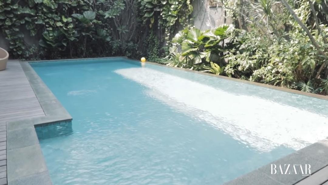 5.Di rumah yang diperkirakan memiliki luas 400 meter persegi itu, juga terdapat kolam renang di bagian belakang yang sekelilingnya ditanami berbagai tanaman hias cantik