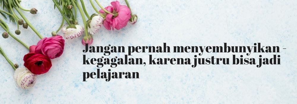 Kegagalan tak selalu dipandang sebagai cermin ketidakmampuan atau kelemahan seseorang. Sebaliknya, kegagalan bisa dilihat sebagai pertanda bahwa seseorang berani mengambil risiko dan berinovasi. Jujur tentang kegagalanmu akan membuat orang lain lebih menghargaimu.