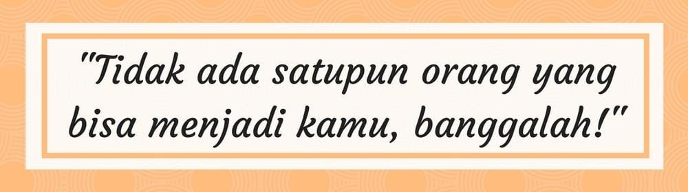 Sadarilah bahwa kamu adalah sosok yang berharga. Dunia ini membutuhkan suaramu dan ingatlah selalu bahwa tidak ada satupun orang di dunia ini yang bisa menjadi dirimu. Kamu lah yang terbaik dan hanya kamu yang bisa menjadi dirimu sendiri. Nasihat Cleo Wade, seorang penyair, artis dan pembicara ini harus benar-benar kamu masukkan ke dalam jiwamu, Bela!