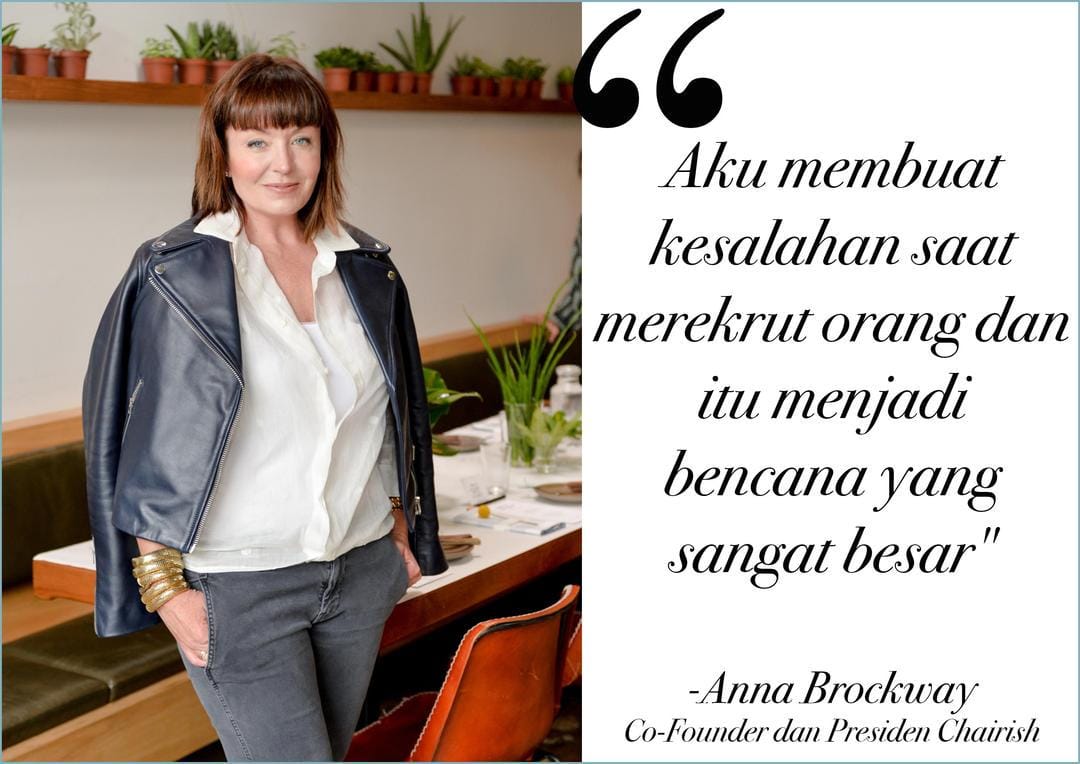 Chairish adalah sebuah flea market online yang bisa kamu kunjungi selama 24 jam. Berbagai macam barang vintage bisa kamu dapatkan disini dengan harga yang cukup murah. Ide brilian ini membawa Brockway pada sebuah profesi yang sangat menguntungkan dalam hidupnya. Namun, bagaimanapun juga ia juga memiliki hal yang ingin dia perbaiki di masa lalu yaitu tidak menjadikan dirinya sendiri sebagai panutan dan alat ukur kesuksesannya. Dia merasa terlalu banyak mendengarkan orang lain, terutama saat merekrut karyawan.