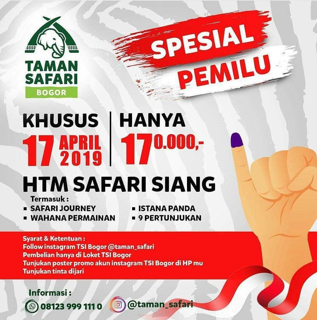 Mumpung libur, setelah mencoblos, kita bisa mengajak keluarga untuk rekreasi sejenak di beberapa tempat yang memberikan diskon menggiurkan ini. Yuk baca penjelasan ketentuan dan syarat di setiap posternya, lalu dapatkan harga spesial di beberapa tempat berikut. Catat ya!