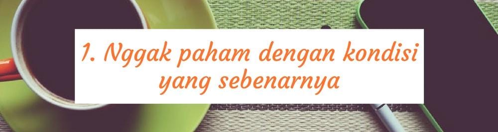 Dalam memberikan asumsi cepat sebenarnya kamu nggak mengetahui kenyataan yang sesungguhnya. Ini terjadi karena kamu punya perbedaan standar, baik itu sisi profesional maupun personal. Dan sisi emosionalmu lebih mendominasi daripada pikiranmu. Sehingga, yang kamu utarakan hanyalah opini pribadi. Membiarkan hal yang seperti ini terus menerus bisa membuatmu nggak bisa menerima lingkungan sekitar. Kemudian, muncul sikap bahwa kamu ingin dihargai lebih karena merasa paling baik.