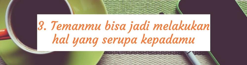 Pada awalnya, kamu merasa benar dan membawa perasaan itu terlalu tinggi. Secara nggak langsung itu melekat dan membuatmu seolah yakin bahwa asumsi yang kamu buat adalah nyata. Tapi, saat ia mencerikatan hal yang sebenarnya kepadamu, yang kamu dapat hanyalah rasa nggak enak. Apalagi kalau kamu telah menceritakan asumsimu kebanyak orang. Lalu, ketika orang lain meminta pertanggung jawaban atas asumsimu, apa yang akan kamu katakan?