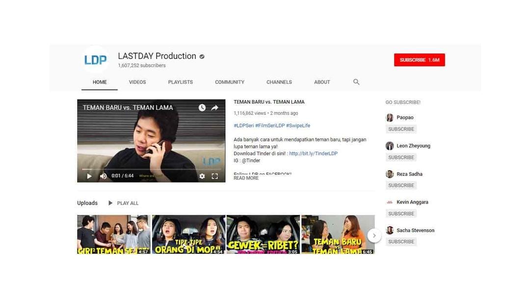 Siapa sih yang nggak butuh hiburan? Terkadang kita senang banget kan lihat video lucu? Ya, jenis video ini salah satu terlaris di YouTube. Lihat saja video parodi karya LastDay Production yang sudah punya 1.607.217 subscriber. Video mereka selalu menarik karena dikemas sangat ringan, lucu dan topik yang dibahas lekat banget dengan keseharian kita.