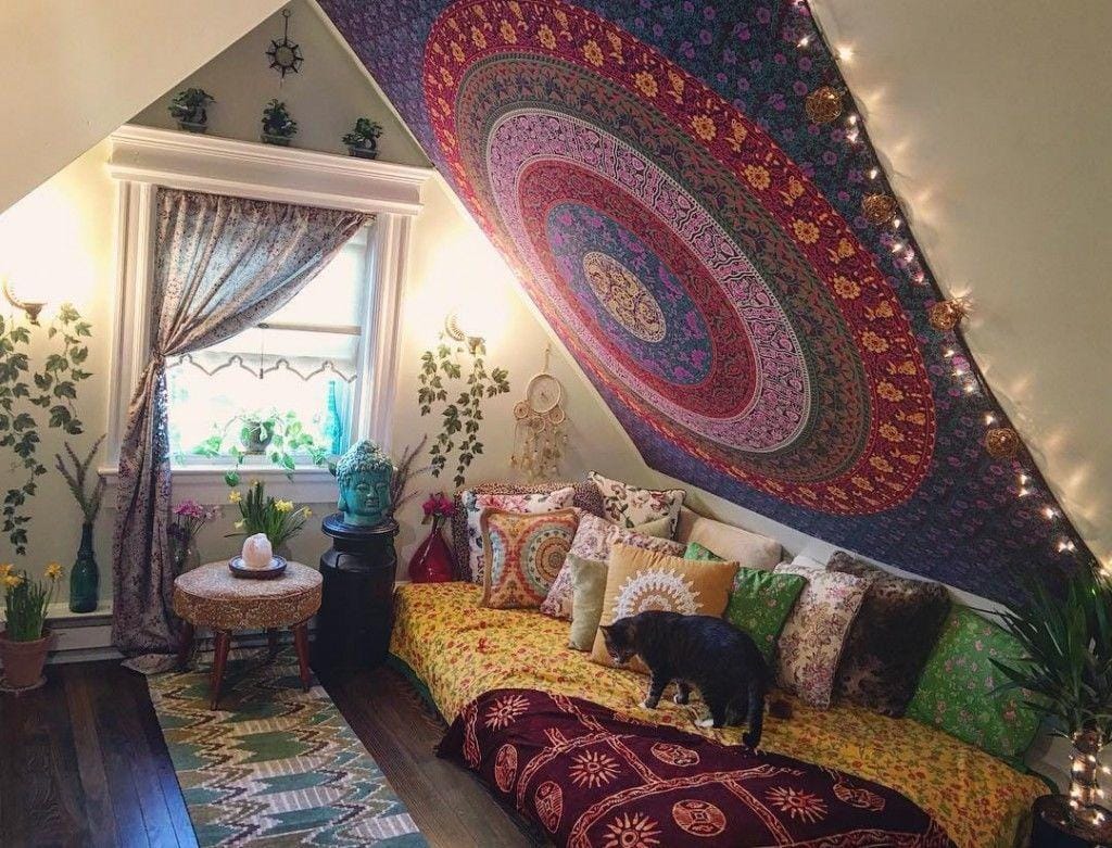 3. Hias tembok kamar dengan kain mandala atau kain pantai Bali yang dibentangkan. <i>Budget</i> Rp45 ribu - Rp50 ribuan