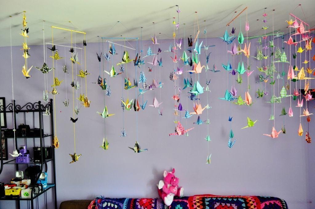 9. Bikin origami bangau jadi tirai macam ini, dijamin kamarmu jadi <i>kece</i>! Budget Rp70 ribuan