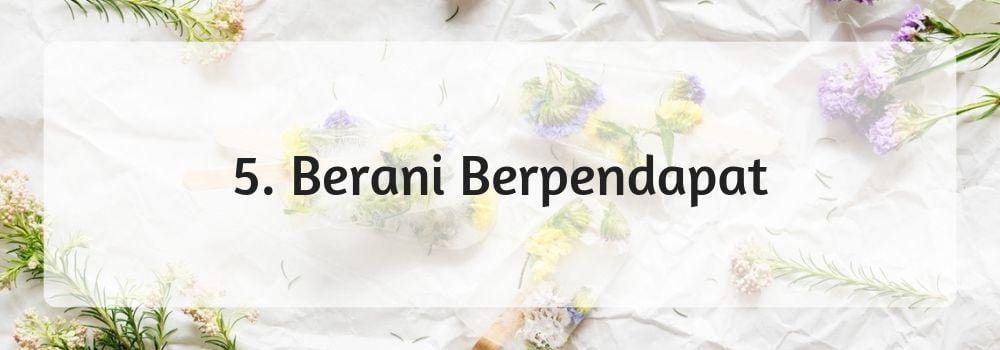 Perempuan mandiri dituntut untuk tidak takut menyuarakan pendapatnya dalam berbagai hal. Tidak perlu takut pada dominasi kaum pria jika memang benar. Berani berpendapat juga salah satu cara menjadi perempuan yang matang dalam berpikir dan bertindak.