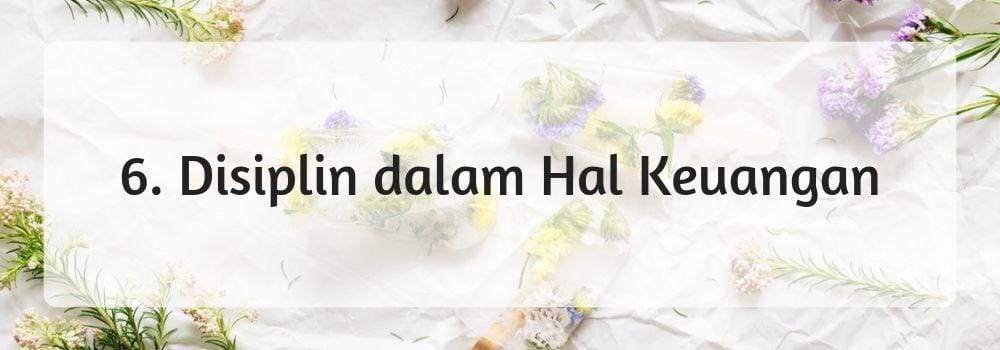 Perempuan mandiri jangan tergantung secara finansial kepada orang lain. Di sinilah kedisiplinan dan ketelitian wajib dilaksanakan, jangan sampai gaji yang telah didapatkan dengan susah payah menguap begitu saja. Mulai sekarang disiplin dalam hal keuangan. Catat dan atur keuanganmu sebaik mungkin agar kamu tahu kemana semua uangmu dibelanjakan.