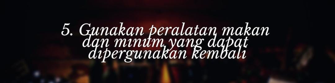 Menggunakan piring, gelas, peralatan makan bahkan kotak bekal yang dapat digunakan berulang kali merupakan cara yang tepat untuk mengurangi limbah plastik, selain lebih hemat akan lebih ekonomis karena mengurangi potensi penggunaan stereofoam dan sendok plastik yang tidak ramah lingkungan.
