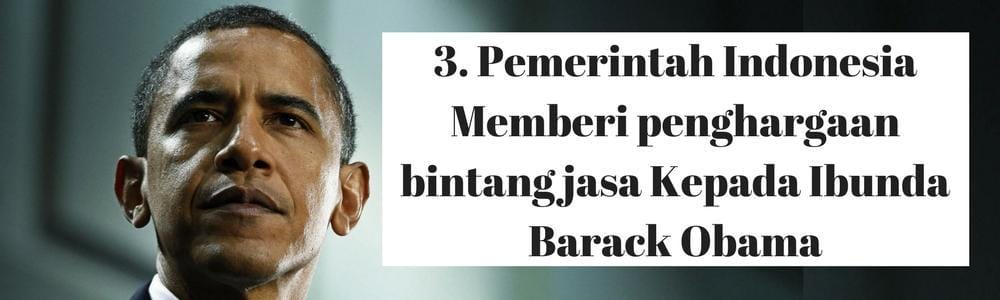 Usai jamuan makan malam kenegaraan di Istana Negara, Selasa malam, 9 November 2010 lalu, Susilo Bambang Yudhoyono yang saat itu masih menjabat sebagai presiden Indonesia, menyerahkan penghargaan bintang jasa untuk ibunda Obama, Dr. Ann Dunham Soetoro. Penghargaan ini diserahkan karena penelitian yang berlatar di Yogyakarta dan Jawa Tengah berjudul "Peasent Black Smithing in Indonesia" karya sang Ibunda dinilai berpengaruh bagi kearifan lokal. Obama pun sangat berterimakasih atas pemberian penghargaan ini.