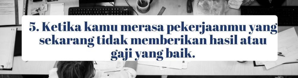 Apa kamu tidak puas dengan pekerjaan yang kamu miliki sekarang? Apa kamu merasa seharusnya kamu bisa mendapatkan lebih dari sekarang? Jika memang demikian, mungkin kamu bisa mulai mencari peluang lain di luar sana, atau berpikir lebih lanjut untuk mematangkan tujuan kariermu, agar kamu bisa mendapatkan apa yang kamu pandang pantas.