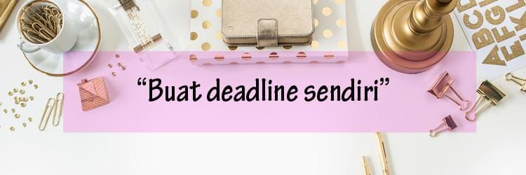 Langkah ini untuk mengukur kemampuanmu saat sedang berada dalam tekanan, karena bekerja dengan waktu yang terbatas sedikit memaksamu untuk lebih produktif. Ketika kamu telah membuat deadine versimu sendiri, usahakan untuk berkomitmen pada jalur yang kamu pilih. Jangan tergoda untuk menunda pekerjaan kamu ya, Bela.