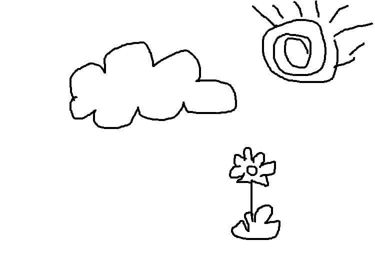 8. Gambar bunga, awan, dan matahari
