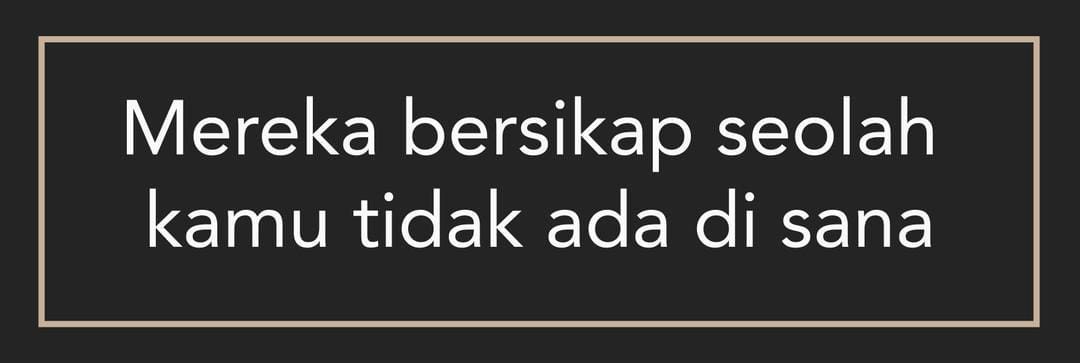 Kamu berada satu ruangan dengan mereka. Sayangnya, mereka sangat jarang mengajakmu ngobrol. Mereka lebih asyik ngobrol bersama tanpa melibatkanmu. Kamu hanya diajak bicara ketika benar-benar ada keperluan mendesak.