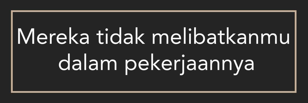 Ciri lainnya adalah mereka langsung pura-pura sibuk dengan pekerjaannya saat kamu memasuki ruangan. Mereka masih memperhatikan apa yang kamu lakukan, tapi bersikap seolah kamu tidak ada. Mereka bahkan menghindari kontak mata di antara kalian. Mereka bahkan malas untuk menyapamu. Percayalah, Bela, ini merupakan tanda kurangnya rasa hormat karena kamu dianggap belum mampu menjadi atasan yang baik. Kalau kamu menemukan kejadian ini, sudah saatnya kamu introspeksi cara kerjamu atau caramu memberi tugas pada mereka selama ini.