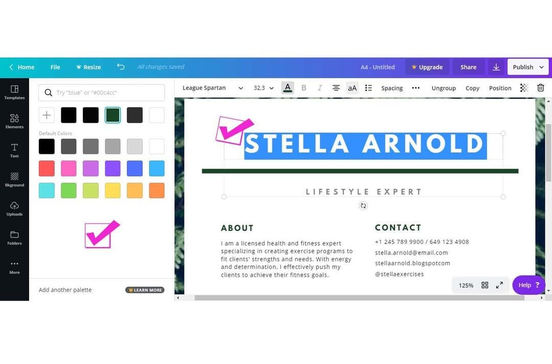 3. <i>Oh</i> ya, walau Canva sudah menyediakan<i> layout</i>, kamu tetap bisa <i>kok </i>mengubah warna<i> font</i> serta mengubah jenis <i>font</i>.