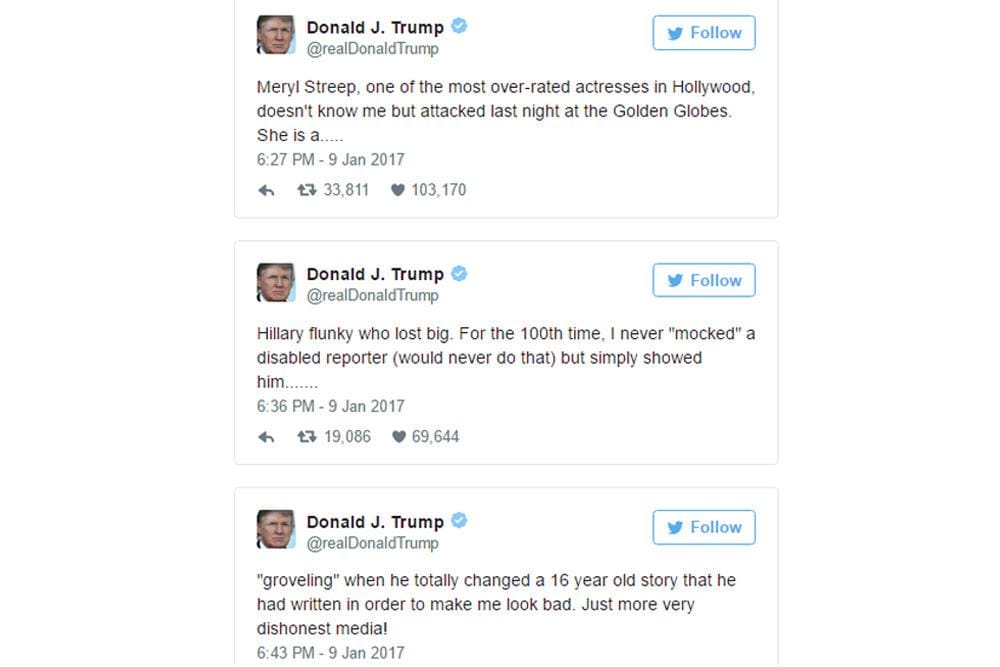 Memang, dalam pidatonya, Streep sama sekali tidak menyebut secara gamblang nama Presiden Amerika, Donald Trump. Namun ketika Streep membicarakan mengenai Jurnalis investigasi The New York Times yang juga sebagai penyandang disabel bernama Serge Kovaleski, netizen langsung memahami arah pembicaraan Streep yang memang menyinggung Donald Trump.