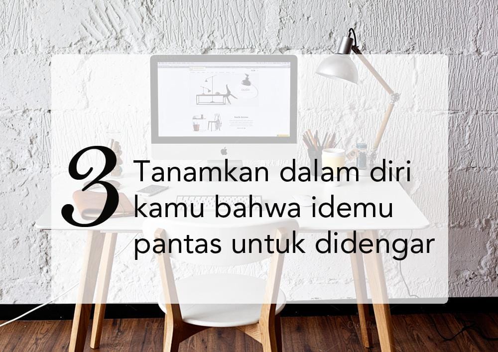 Bela, poin ini penting banget nih, karena untuk sebagian orang, mereka nggak pede untuk mengutarakan pendapatnya di dalam meeting sehingga alhasil mereka nggak aktif di dalam meeting itu sendiri. Buang jauh-jauh pikiran seperti itu ya Bela! Every idea is worth sharing! Nggak ada ide yang buruk termasuk juga ide kamu. Jika kamu nggak pede dengan idemu karena kamu mengira bahwa idemu biasa-biasa aja, bisa jadi orang lain menganggapnya luar biasa! Who knows?