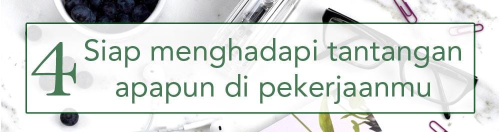Mempersiapkan diri dalam menghadapi apapun yang berkaitan dengan pekerjaanmu. Kamu nggak keberatan diberikan tanggung jawab lebih dari atasan kamu untuk menyelesaikan tugas. Because you really loving it! Kamu nggak menganggap itu adalah sebuah beban melainkan kamu berpikir akan mendapatkan ilmu yang lebih banyak.