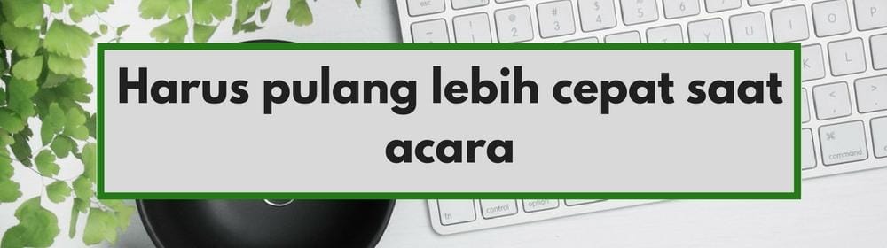 Pada akhir pekan, biasanya kamu harus pergi ke undangan pesta. Sebenarnya sih ingin lebih lama di sana, tapi apa daya jika tugas menumpuk di komputer membuat pikiran kamu nggak bisa tenang dan akhirnya meminta izin untuk pulang lebih cepat.
