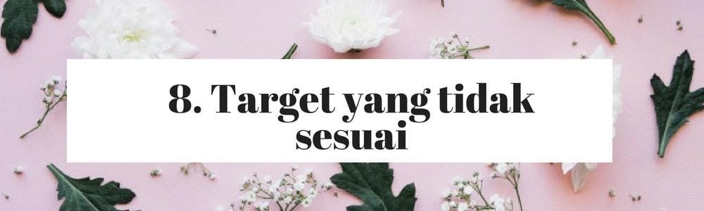 Mirip dengan poin-poin sebelumnya, memasang target yang kurang sesuai dengan kemampuan bisa membuatmu menghindari kenyataan. Orang lain pun juga bingung apa yang menjadi tujuanmu. Hindari membuat alasan yang tidak masuk akal. Kalau kamu memaksakan target yang kurang masuk akal, sama saja melakukan hal yang sia-sia.