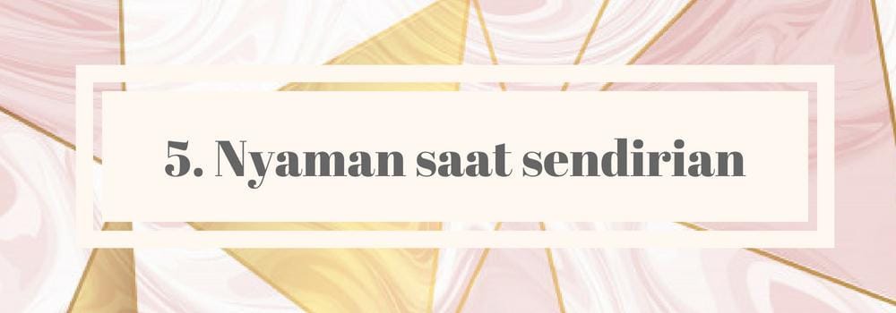 Melakukan aktivitas sendirian memang melatih kemandirian tapi juga rentan untuk mendapatkan omongan yang kurang enak didengar. Padahal dengan aktivitas atau pergi sendirian kamu bisa pegang kendali penuh atas diri sendiri. Kuncinya percaya diri, positif, dan tetap waspada. Nikmati wakti sendirian sebagai me time dan mengenali diri. Dan, ketika kamu sedang suntuk dengan berbagai arahan dari orang lain, kegiatan ini juga mampu membuat kembali berpikir jernih.