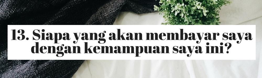 Tanyalah diri kamu sendiri pekerjaan jenis apa yang terus datang padamu saat ini. Meski kadang kamu meremehkannya, mungkin saja bidang ini sebenarnya adalah hal yang kamu sukai dan kamu mampu melakukannya.