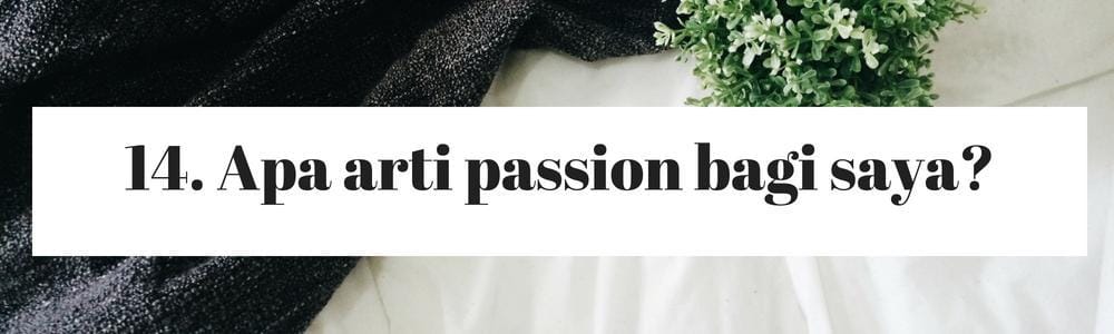 Pertanyaan terakhir yang perlu kamu tanyakan ke diri kamu sendiri adalah apa itu passion. Banyak orang berpikir kaau passion artinya melakukan apa yang mereka cintai selamanya dan hal ini terlihat sangat sempurna. Namun mungkin saja, kita merasa passion adalah suatu hal yang kita mampu namun kita sama sekali tidak bisa menikmati prosesnya. Passion bukan berarti sempurna, semua tidak akan berjalan mulus-mulus saja, Bela.