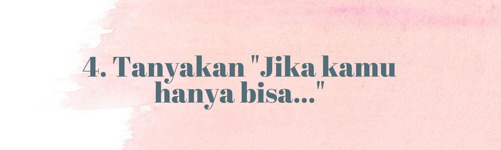 Selain memberi pertanyaan "Jika kamu hanya bisa...", kamu dapat memberikan pertanyaan yang berbunyi, "Lebih pilih mana..." Ini akan membuat percakapanmu jadi lebih menyenangkan. Contohnya, "Lebih pilih mana, nggak bawa dompet atau nggak bawa hp?"