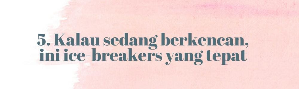 Akan berkencan dengan seseorang? Jangan gugup, Bela! Ketika terjadi keheningan di antara kamu dan teman kencan, lontarkan pertanyaan sederhana seperti kesukaannya pada binatang, minatnya pada buku atau film, atau daerah tempat ia tinggal semasa kecil. Pertanyaan ini dapat memancing kembali percakapan di antara kamu dan dirinya.