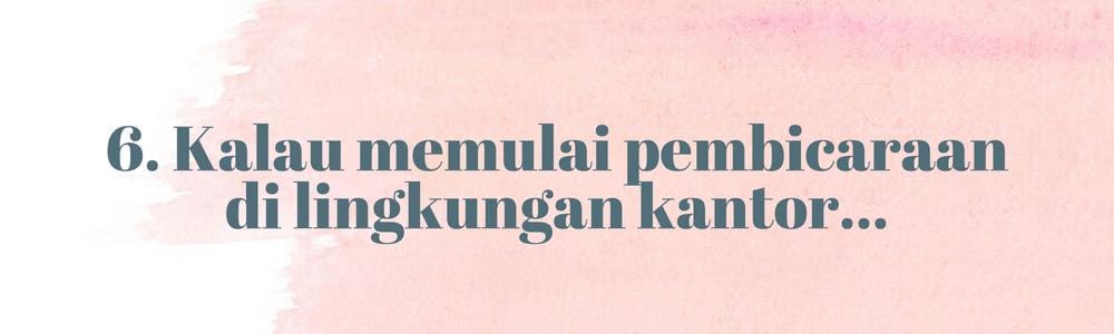 Baru beradaptasi di lingkungan baru? Atau ingin menambah pertemanan dengan rekan-rekan kerja lainnya? Kamu bisa menyapa mereka dan memulai pembicaraan dengan melontarkan pertanyaan seperti, "Bagaimana liburanmu kemarin?", "Ruangan ini terasa dingin atau hanya aku yang merasakannnya?", "Bagaimana harimu, sibuk?".
