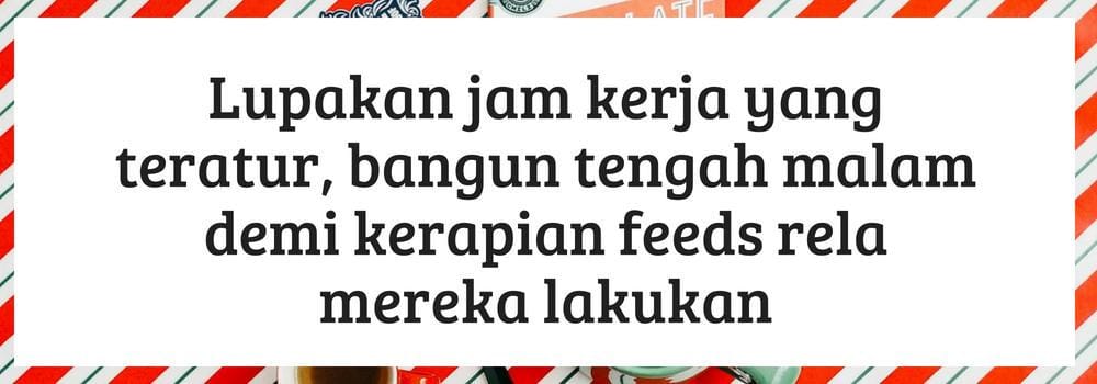 Bersyukurlah kamu yang bekerja teratur 8 jam setiap harinya. Sebagai admin media sosial, mereka harus terbiasa dengan jam kerja yang 24 jam. Belum lagi jika akun yang mereka pegang mengharuskan adminnya fast respon. Bangun tengah malam pun sudah biasa mereka lakukan jika ada revisi mendadak. Semua ini demi kerapian feeds di media sosial.